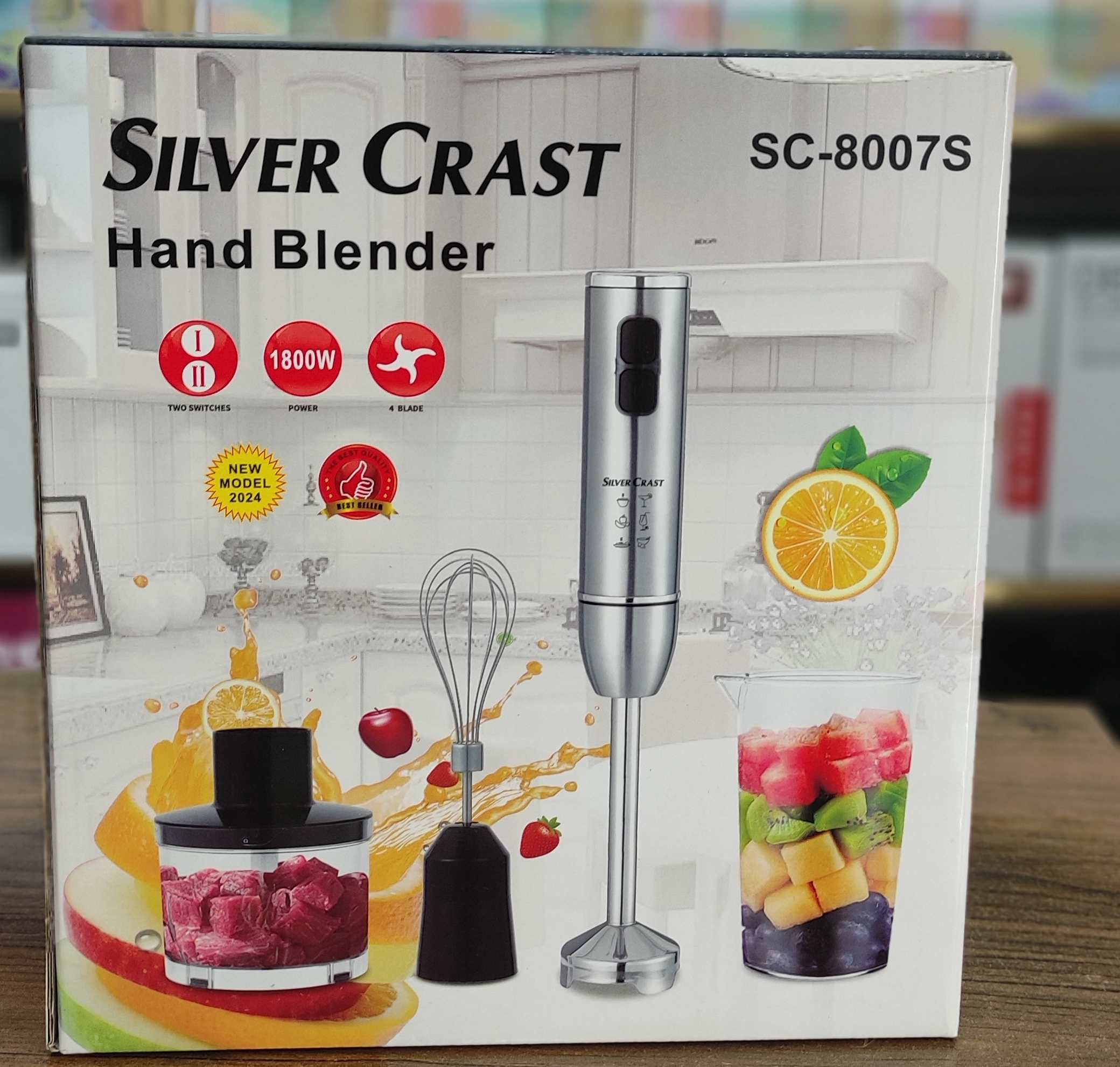 ✅برند: سیلور کرست✅توان: 1800وات✅کارایی: گوشکوب_خردکن_ همزن✅دارای موتور سنگین 2موتوره✅جنس بدنه: استیل ضد زنگ✅حجم ظرف خردکن: 1لیتر✅جنس میله: فولاد ضد زنگ✅جنس تیغه: استیل ضد زنگ✅دارای تیغه 4پره✅تعداد سرعت: 2دنده✅قابلیت جداشدن موتور از گوشکوب و وصل شدن به خردکن و همزن✅دارای یک لیوان 0.7 لیتر برای میکسر